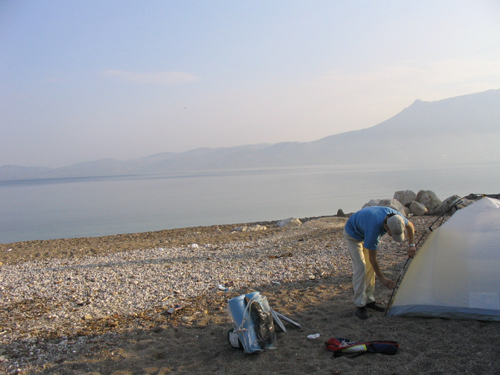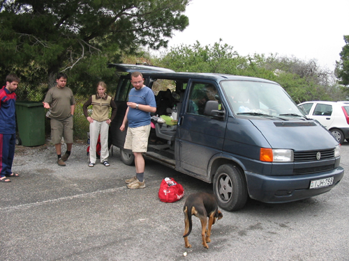 1. nap, 2. nap, 3. nap, 4. nap, 5. nap, 6. nap, 7. nap,  Elmondhatom, hogy kellemes éjszakát töltöttünk el, de reggel már a betonkeverő zajára ébredtünk. Hamar megreggeliztünk és továbbálltunk. Itt lépett be az életünkbe egy kicsi kis remeterák, aki néhány napon keresztül útitársunk volt bárhova mentünk. Betettük egy kakaós flakonba és sós vízzel tápláltuk. Innen rögtön továbbindultunk Korinthus felé azaz az óvárosi rész felé, ahol megnéztük a romokat, ahova nem ment mindenki be, mert nem volt mindenkinek diákigazolványa. Akik bementek megmutatták a fényképeket, de olyan sok mindenről nem maradt le senki sem. A jobb részeket kintről is lehetett látni úgyhogy, senki nem bánkódott. Míg a többiek bent voltak addig mi (lányok) is találtunk néznivalót, először egy feltárásra váró akárminek a maradványát aztán meg végigjártuk a boltokat. Volt ott egy bácsi, aki szívesen fogadott bennünket és elmagyarázta, hogy ő már negyven éve festi a kerámiákat és mi is megnézhettük, hogy milyen pontossággal dolgozik. Éppen egy újabban dolgozott és mire otthagytuk már félig kész is volt a tányér. Utána közösen bementünk egy boltba, ahol a tulaj saját készítésű borát árulta, de bár ne tette volna, hisz nagyon kedvesen felajánlotta, hogy kóstoljuk meg, hát…nem volt valami rendkívüli. Korintus után Mükéné következett, egy újabb ősi hely. Nem sokban különbözött a többitől, de nagyon szép helyen feküdt. Természetesen már megint olyan helyeken mentünk ahol a madár is ritkán jár, szűk szurdokban, hatalmas magasságokban. A táj gyönyörű volt, minden nagyon szép. Mükénébe a belépő elég sokba került és amikor bevezettek minket egy hatalmas üregnek nevezhető valamibe azt hittük, hogy rögtön megüt miket a guta, hogy csak ezért az üregért adtuk ki azt a sok pénzt. Aztán később kiderült, hogy egy kicsit távolabb van egy másik hely is, amit ezzel a jeggyel meg lehetett nézni. Miután megnéztük még a helyi múzeumot is, amiben már lassan unalmassá váló agyagcserepek, beálltunk egy parkolóba enni mivel már nagyon korgott a gyomrunk. Ebéd alatt miközben mi azzal bajlódtunk, hogy a kis gázmelegítő felforralja a kajánkat, egy aranyos kutyus csatlakozott hozzánk. Nem is nagyon nézett ki kóbor ebnek, hisz fajtiszta volt, először még azt is hittük, hogy valamelyik lakókocsisé, de aztán csak nem akart tágítani. Kénytelenek voltunk tehát megosztani ebédünket vele, hisz annyira könyörgött a szemével.  Ebéd után az utunkat Spárta felé vettük, amely Görögország elég déli részén van, és újra reménykedtünk abban, hogy találunk majd helyet az alvásra. Amikor beértünk Spártába, megpróbáltuk megkeresni a történelmi helyeket, de valahogy sehol sem találtuk. Megkérdeztünk néhány járókelőt, de ők csak bámultak, nem nagyon tudták megmondani, hogy hol is vannak azok a híres romok. Egy kicsit lavírozgattunk a házak között egy irányú utca, nem számít az már nekünk és valóban találtunk néhány háznak az alapkövét, de nem tudtuk elhinni, hogy ezért utaztunk 100 km-t, hogy ezeket lássuk. Aztán mégiscsak akadt egy ember aki meg tudta mutatni az irányt, hogy merre is menjünk. Először egy nagy edzőteret találtunk, ahol egy félmeztelen hatalmas szobor várta az érkezőket. Utána megláttuk táblát, ami egy múzeum felé vezetett, de az azonban már zárva volt. Felmentünk a dombra, ami egy olajfa ligetbe vezetett, ahol teljesen úgy érezhetted maga, mint a tanítványok az Olajfák hegyén. Meg is találtuk a romokat, de az éjszaka is ránk talált. A fiúk kitalálták, hogy éjszakázzunk ott, hisz ilyenkor már senki nem jön fel ide, meg úgyis eltakarnak a fák. A közelben valahol folyton valami állat ordítása hallatszott, de nem tudtuk megfejteni, hogy mi lehetett az . Elég kétségbeejtő hang volt, nem szívesen éjszakáztam volna a közelébe, de mivel a többiek jónak ítélték én is beleegyeztem. Már csak a sátorhelyet kellett volna megtalálni, ami nem volt egyszerű dolog, és egy kis vita akadt e miatt. Végül aztán egy teljesen sík felületet választottunk és nem a füveset, ahol csak a köveket kellett egy kicsit eltakarítanunk a derekunk alól és már álltak is a sátrak. Rögtön mellettünk egy szakadék tátongott. Körbevettek a fenyőfák, a levegő nagyon lehült. Lefekvés előtt vacsora jó paraszti módra, hagymával és szalonnával, azután szépen álomba szenderültünk. 1. nap, 2. nap, 3. nap, 4. nap, 5. nap, 6. nap, 7. nap, |
